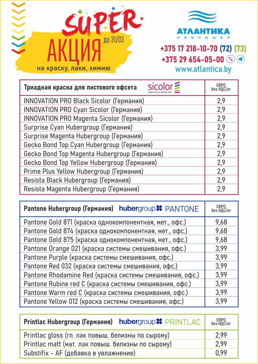 Мы рады сообщить о SUPER Акции на краски, лаки и химию для полиграфии!